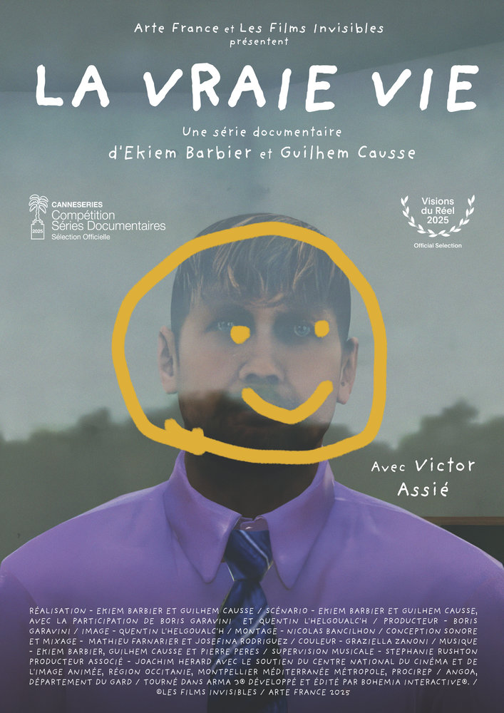 Victor Assié, comédien en galère, se voit proposer un projet inhabituel : participer à un jeu de simulation de vie en ligne, dans lequel il tiendrait son propre rôle. Sous le regard de deux réalisateurs qui enregistrent l’expérience en temps réel, il débarque sur une île virtuelle où évoluent des avatars exerçant toutes sortes de métiers. Sa mission : s’intégrer. D’abord déboussolé, il prend ses marques au gré de rencontres parfois déroutantes, quitte à brouiller les règles du jeu… Cette expérience documentaire surprenante porte un regard tendrement absurde sur nos « vraies vies » partagées entre réel et virtuel.